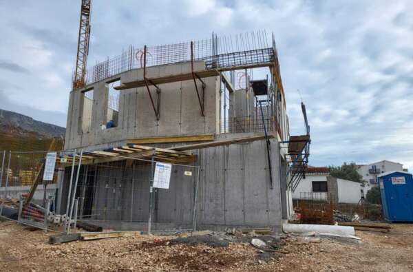 Dva dvojna stambena objekta s po 5 stambenih jedinica (ukupno 10 stanova) s natkrivenim otvorenim parkingom na lokaciji Podstrana kod Splita.