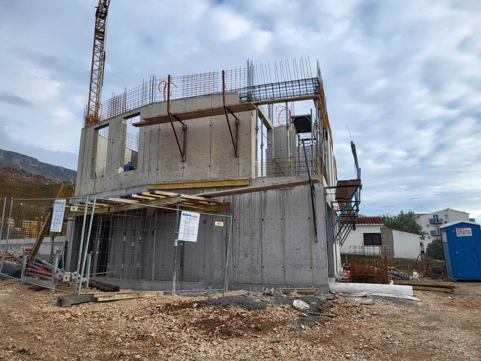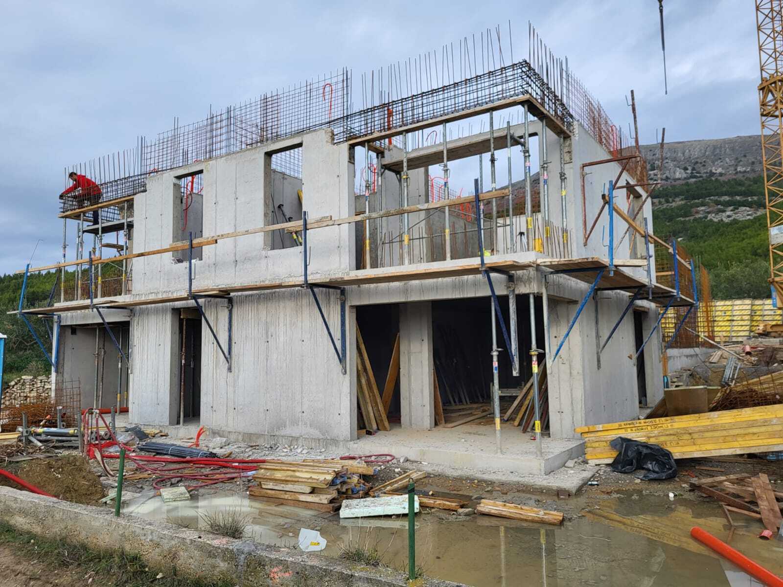 Dva dvojna stambena objekta s po 5 stambenih jedinica (ukupno 10 stanova) s natkrivenim otvorenim parkingom na lokaciji Podstrana kod Splita.